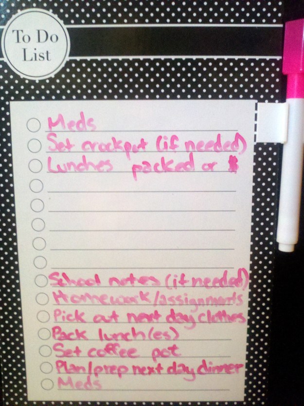 By the way… the checklist on the right… the task in the middle is “take your medicine”. I know. It’s really hard to decipher and I’m not so good at drawing a medicine spoon or bottle.