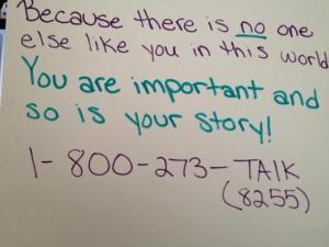1 of over 200 signs created in response to why you should call the National Suicide Prevention Lifeline. Click on this picture to view the others.